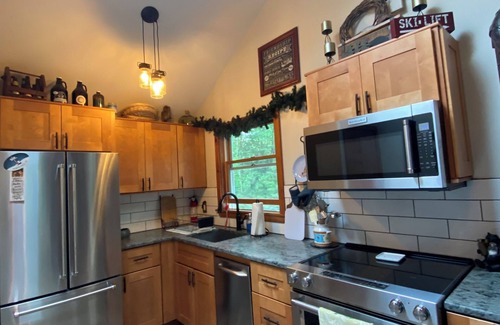 The property features master suite with queen bed and 2nd bedroom loft with queen bed and twin size sofa bed. The living room has a queen sofa bed. There is a large deck and BBQ grill to enjoy after a hike, biking or after skiing. There is a fire pit with Adirondack chairs around to enjoy roasting marshmallows and smores. There is a gondola to enjoy an experience aspre ski right in the back yard.