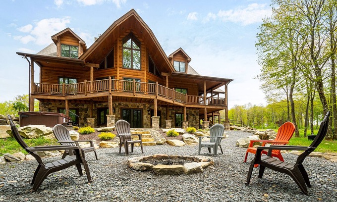 Discover Away in the Mountains | Close to Golf & Lake!, an elegant five-bedroom log home nestled in the picturesque setting of McHenry, Maryland. This stunning property is the ideal venue for your dream wedding, offering a serene and rustic charm that creates a romantic backdrop for unforgettable moments. With spacious interiors, breathtaking views, and versatile spaces, this accommodation can accommodate both intimate gatherings and larger celebrations with friends and family.