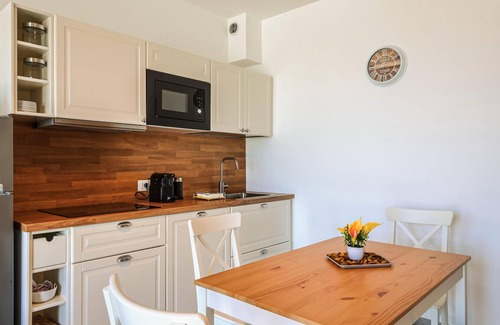 Look forward to this cozy and inviting vacation apartment with shared pool in a quiet location.
