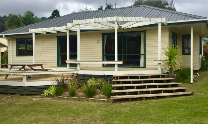 Light, bright and tidy bach that's really easy to relax in. 5 minute stroll from Matarangi Beach,10 minutes to cafe, dairy, and liquor store, 2 mins to tennis courts and childrens playground.