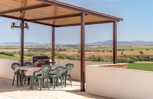 The house offers a spacious living area that invites you to linger. Make yourself comfortable on the cosy sofas and spend sociable evenings here with the whole family. The dining area is ideal for enjoying meals together, which you can prepare in the well-equipped kitchen. The kitchen itself offers plenty of space and modern equipment to fully utilise your cooking skills. To make your stay even more memorable, there is a large, authentic paella pan at your disposal, perfect for preparing a traditional Spanish paella. Use the barbecue area for a cosy outdoor barbecue and enjoy the sweeping views over the surrounding fields. End the day on the terrace as the sun sets over the Andalusian countryside.
