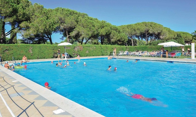 Vacation apartment in a two-family house in a complex with swimming pool on the edge of the Regional Park Roccamonfina. It is located in the heart of a large pine forest (180,000 m2) by the sea. Ideal place for a vacation with the whole family: for the children and the young there are many activities available: Tennis court, basketball, soccer, mini golf, table tennis and bowling. More than 18 hectares for jogging tracks. Possibility to rent bicycles directly in the village. The beach is 100 meters away through an avenue surrounded by pine trees. Private terrace with table and chairs for outdoor meals. Outside the complex (about 100 m away) there is a convenient supermarket and various bars, restaurants and pubs. In the complex also animation for children and adults. For day trips you can visit Sessa. The surrounding area is rich in history, culture and food and wine events. Do not miss visiting Naples, Rome, Caserta, Gaeta, the islands of the Gulf of Naples and the Sorrento Peninsula. For archaeology lovers there is the Archaeological Park of Cuma and the Archaeological Park Baia Sommersa. The thermal baths of Suio are 15 minutes away by car. In the complex IKG107 and IKG110.
