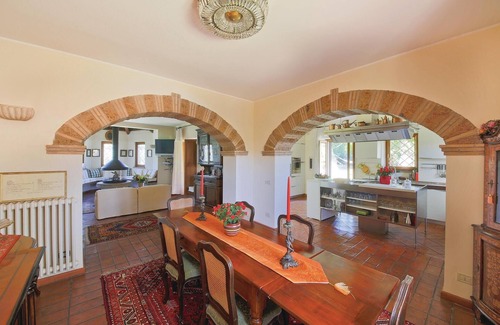 The beautiful swimming pool with pool-house (changing room and shower) is the ideal place where to rest after a day trip and underneath the large portico, furnished with a 12-person table, wood-burning oven, barbecue and an outdoor kitchen (complete with fridge, dishwasher and ice-maker) guest can enjoy will enjoy al fresco meals at any time of day.