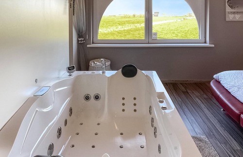 On the second floor there is a luxurious bedroom with a large and comfortable double bed, an inviting whirlpool and a projector with DVD player. The spacious kitchen is fully equipped with dishwasher, refrigerator and microwave with oven. Pets are welcome in this vacation home. You can take your dog for nice walks in the nature. The special atmosphere and luxury makes this cottage suitable for a vacation all year round, but also for a festive occasion.