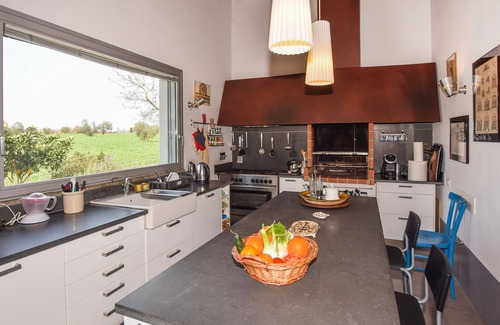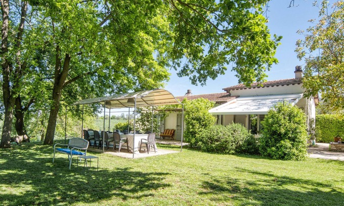This family-friendly vacation home welcomes you between the coast of the Tyrrhenian Sea and Lake Bolsena. High ceilings, individual furnishings and lots of colors create a homely ambience in which you can feel at home. Enjoy the view of the landscape while cooking and step out onto the covered terrace from the living room, which invites you to spend cozy evenings by the fireplace. Find your favorite spot under the pergola or the other terrace area and in the shade of the trees. Read a book while your children have fun jumping around in the garden. Plan your next activities over dinner.