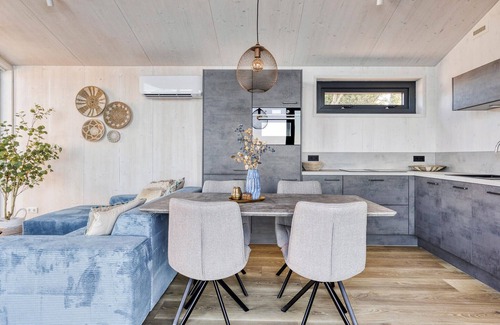 In an excellent location right on the water, this comfortable house welcomes its guests in beautiful surroundings and close to many activities. Make yourself comfortable with your loved ones in the modern and stylishly furnished rooms. After your adventures, gather the whole family together for a delicious dinner with a wonderful view and review the day's experiences. Relax on the comfortable sofa and watch a good film together.