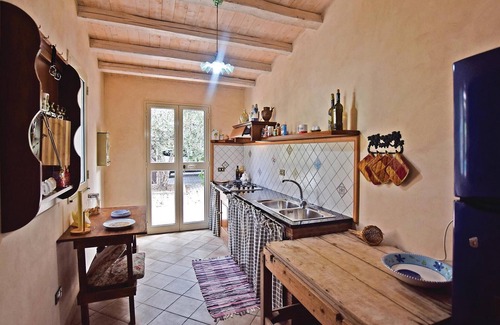 This holiday home in the countryside is located in a hilly area near Licata, a beautiful town close to Agrigento, on the southern coast of Sicily. The sea is very close by and you can easily walk to Mollarella beach, comfortable and well-equipped during the day, which becomes the centre of lively summer evenings after sunset. Sea lovers will also find the bays of Nicolizia, Cavaddruzzu and Balatazze nearby, where small, almost private beaches alternate with cliff formations, these bays are very popular with snorkellers and divers. The house has a double bedroom with a loft with a single bed, spacious living room with sofa bed, kitchen with breakfast area, bathroom with shower, large furnished terrace, covered carport, barbecue and outdoor kitchen. The property is surrounded by a large garden characterised by ornamental plants and fruit trees, as well as characteristic almond and olive trees and a vineyard. Thanks to its central location on the southern coast of Sicily, you can also find several places of cultural interest in the vicinity of the holiday home. The owner keeps his dogs on site.