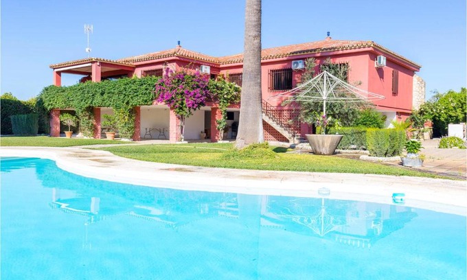 Providing a garden, Awesome Home In Morón De La Frontera provides accommodations in Morón de la Frontera. This property offers a private pool, free Wifi, and free private parking. Outdoor seating is also available at the vacation home. The air-conditioned vacation home consists of 5 bedrooms, a living room, a fully equipped kitchen with a dishwasher and a coffee machine, and 2 bathrooms with a bath. A flat-screen TV is featured. The accommodation has a fireplace. Seville Airport is 37 miles away.