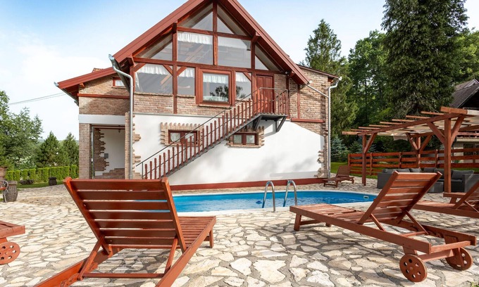 Welcome to this cozy vacation home in Pozega-Brestovac. Arrive with your extended family and explore the interesting and beautiful house. Designed in a rustic style, the house exudes a homey feel-good atmosphere. Relax in bedrooms and come together in the living and activity room. Here you can relax, warm up in front of the fireplace, watch a movie or find your tournament champion in darts, billiards or table soccer. Leave your hectic everyday life behind and sweat out all the stress in the sauna and then refresh yourself in the swimming pool. Watch your children play in the garden while you make yourself comfortable on the sun loungers and read a good book.