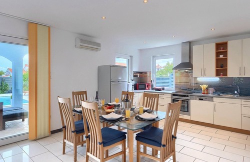 If you choose Villa Deep, you will not be disappointed! This beautiful villa has a total of 4 bedrooms and can accommodate up to 10 people, making it ideal for a relaxing family vacation. On the ground floor you will find the spacious living room with pool table and the fully equipped kitchen with dining area. One of the bedrooms, which has a private bathroom, is also on the ground floor. The other 3 bedrooms are on the second floor, from where you have a breathtaking view of the surroundings. The ground floor has direct access to the terrace, which is located next to the inviting pool. Villa Deep is air-conditioned, has WiFi, a TV in every bedroom and a children's playground for the youngest guests. For relaxing moments with family and friends, there is a Finnish sauna and a jacuzzi as well as a newly renovated lounge area by the pool where you can enjoy the warm summer breeze while reading your favorite book.The beautiful Villa Deep is located in a quiet, picturesque village called Musalez, near Porec - one of the most significant vacation resorts in Istria. The first beaches are 4 km away from the villa. Here you can find the stone and pebble beaches awarded with Blue Flags for quality and the turquoise Adriatic Sea. In Porec you will find all kinds of activities, restaurants, bars and clubs, but the city is best known for its rich cultural heritage. Porec, formerly a Roman colony, reached its peak during the reign of the Byzantine Emperor Justinian. The breathtaking Euphrasian Basilica, under UNESCO protection, is the best proof of how glorious this era was. Areas of interest include the medieval towns of Motovun and Groznjan and the coastal towns of Rovinj and Vrsar. A little further afield, the Brijuni Islands, the Roman amphitheater in Pula and Venice are easily accessible from this region.