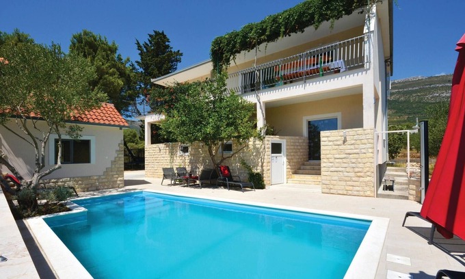 This vacation home with an outdoor pool, available until October, is located in a quieter area and surrounded by the greenery of nature. It consists of two floors. On the ground floor are bedrooms, two bathrooms (one only access from the outside) and a recreation room. An external staircase leads you to the second floor, with three bedrooms, toilet and bathroom, as well as living room with kitchen and exit to the balcony. In the courtyard you will find the heated pool, space for sunbathing, also barbecue and playground equipment for children. Visit all seven forts: Sucurac, Kastel Gomilica, Kambelovac, Luksic, Stari, Kastel Novi and Stafilic. These forts were built about 500 years ago for protection from Ottomans and pirates and a small village has formed around each one.