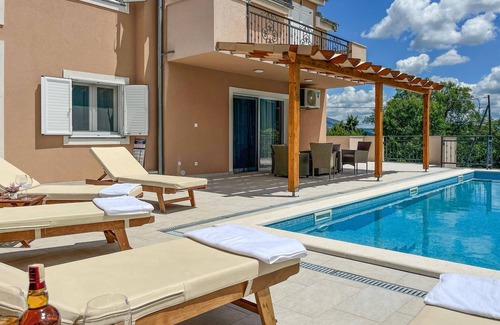 The spacious house is the perfect place to relax with friends or family, including your pet. Enjoy the sweeping views over the beautiful countryside from one of the two balconies. During the day, you can cool off in the pool right in front of the house and enjoy the Croatian sunshine.
