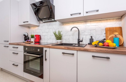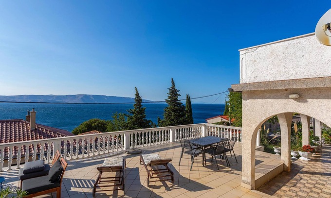 The beautiful vacation house is on two floors and is located with a beautiful view of the sea and the countryside in the town of Senj. The house is located in a quiet area. That's why you will spend most of your time on the large terrace, because you can enjoy sunbathing and preparing barbecue meals on it. The floors are connected by external stairs. In Senj, in front of a crystal clear water, there are concrete beaches, but also rocky and pebble beaches. In summer, fish restaurants, bars and discos are open. There is also a well-known summer carnival. The fortress Nehaj, which towers over the city, is famous for the children's novel "Red Zora", which was filmed here.