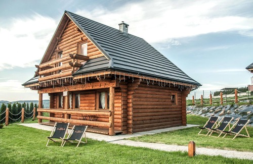 Relax in southern Poland in this beautiful log cabin with panoramic views of the mountains.