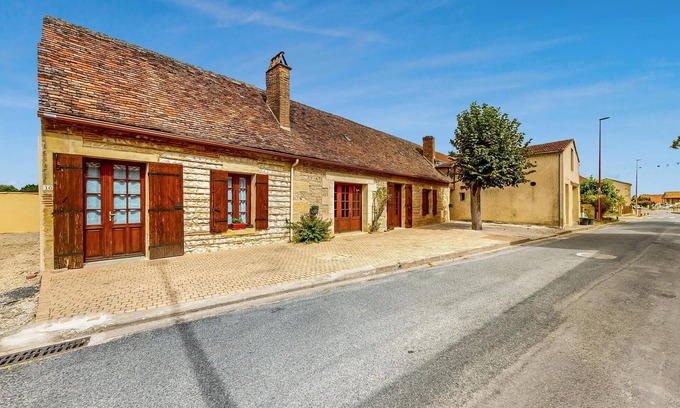 Spend your holiday in this cosy holiday home in an original village to the west of Bergerac. Surrounded by extensive vineyards and just a short walk from the Dordogne, the house offers a pleasant atmosphere for a relaxing break. Settle down on the comfortable sofas in the living room and enjoy the traditional décor with antique furniture, exposed wooden beams and rustic stone walls. The spacious dining table invites you to enjoy meals together. Use the kitchen to prepare regional specialities.