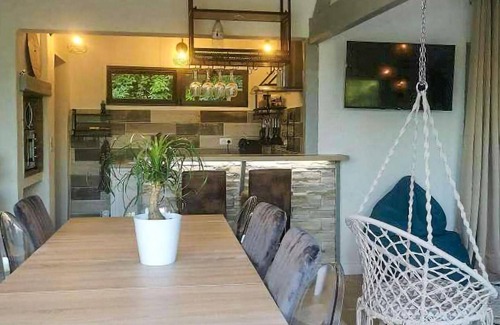 Welcome to this attractive and spacious vacation home that welcomes its guests in an idyllic location. Make yourself at home in the homely rooms with beautiful common area with several families or a group of friends, appealing bedrooms, many of them with floor-to-ceiling windows, let you rest wonderfully. Exert yourself on the exercise bike, host entertaining billiards tournaments and enjoy time together in appealing surroundings.
