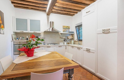The house is well furnished and suitable for a relaxing stay in Tuscany. Relax reading a book in the space reserved for you in front of the entrance or at the back of the house, where the large outdoor area frames the green landscape of Ville di Corsano.