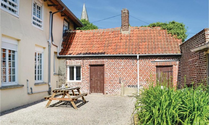 Awesome home in Volckerinckhove with 5 Bedrooms and WiFi is located in Volckerinckhove, 41 km from Plopsaland, 46 km from Calais Railway Station, and 22 km from La Coupole. The 3-star holiday home is 28 km from Dunkerque Train Station. The 5-bedroom holiday home is equipped with a living room with a TV, a fully equipped kitchen with a dishwasher and microwave, and 2 bathrooms with bath. Providing free private parking, this 3-star holiday home also features free WiFithroughout the property. Dunkirk Harbor Museum is 28 km from the holiday home, while Belfry of the Saint-Eloi's Church, Dunkerque is 29 km away. The nearest airport is Ostend - Bruges International Airport, 70 km from Awesome home in Volckerinckhove with 5 Bedrooms and WiFi.