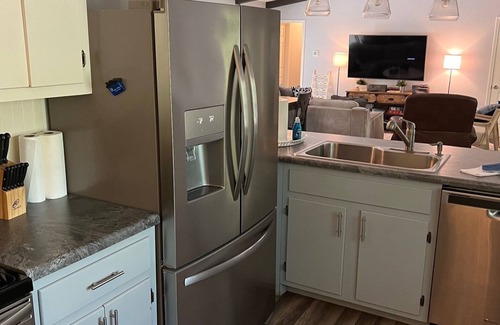 Enjoy a kitchen with an open floor plan and not only the essentials to cook, but also extras like a grill kit, air fryer, crock pot, blender, toaster, waffle maker, coffee machines (regular and k-cup), espresso machine, coffee grinder, extra ice maker, hand mixer and more.