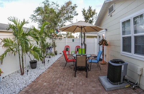 The outside patio is completely fenced in for privacy. Tranquil and soothing, it's a great place to relax, read, sun yourself, or BBQ for yourself or the family. An outdoor shower area makes it easy to cool off, or rinse off from the beach.
