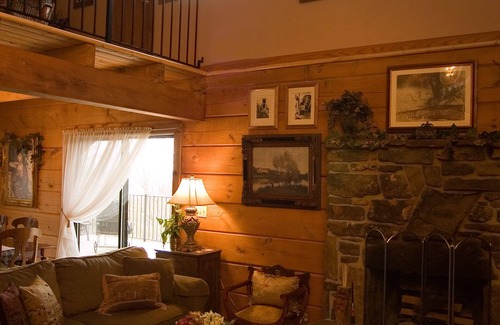 Naturally blended into the Ozark Mountains, near the upper Buffalo National River, Azalea Falls Cabin is a luxurious, chalet styled log home. Filled with artwork and antiques, it has 3 bedrooms, 2 1/2 baths, whirlpool tub, fully appointed kitchen, satellite TV, VCR, WiFi, stereo and a large wraparound deck which overlooks the hollow.