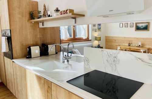 Azzurro Mountain Lodge is located in a typical Trentino house from the 1700s, on the second floor of what was once a wonderful barn with stable. The romantic apartment has large windows that fill the spaces with light and a balcony with a beautiful view of the historic center of the small village and the mountains and woods that illuminate it. From here it is possible to watch the sunrise while sipping a good coffee before setting off to discover this area so beautiful that it is a UNESCO Biosphere. Back home, the crackling fire of the stove will warm your evenings after a fantastic day in the mountains, and the brand new kitchen will be at your disposal if you want to prepare some dinner with tasty local products. When night comes, the peaceful bedroom will relax you into peaceful dreams.