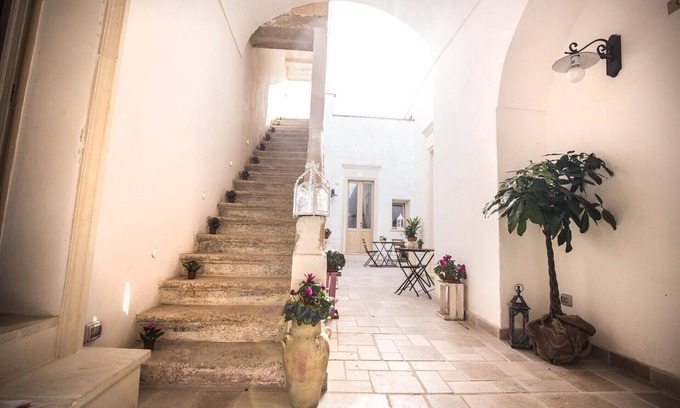 The property is located in a quiet setting, away from traffic, in the historic village of Poggiardo, in a typical courtyard of the old houses of Salento.