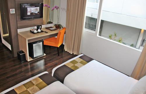 A 10-minute drive from Kuta Beach, b Hotel Bali is a contemporary minimalist-style hotel with a spa, and an outdoor pool. Free Wi-Fi throughout its premises. Guests who drive enjoy free parking privileges. Fitted with wooden flooring, each air-conditioned room in b Hotel Bali is pleasantly decorated with artwork and stylish interiors. They include a seating area, electric kettle and a flat-screen satellite TV. Select rooms feature a private terrace or balcony with garden or pool views. The hotel is also a 10-minute drive from Kuta area where guests can find many shopping and dining options. Ngurah Rai International Airport is 15 minutes’ drive away. Staff at the 24-hour front desk can assist with luggage storage and safety deposit box usage. Housing a meeting room, the hotel also provides laundry, car rental and airport shuttle services at additional charges. Guests can enjoy a variety of Indonesian, Asian and Western dishes in Pangi Restaurant or in the comfort of their rooms.