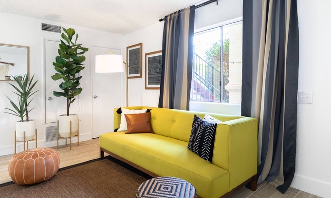 Enjoy hotel-quality accommodations but with the comfort and privacy of your own home in this newly furnished, modern two-bedroom apartment. Designed with a warm pallet, textures, and a splash of green.