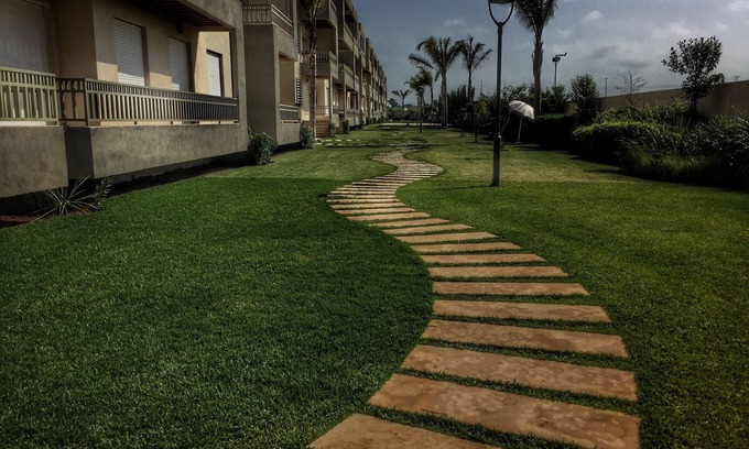 In a very quiet place Bab Rayan residence with garden and swimming pool my apartment on the ground floor composed of a bedroom living room kitchen bathroom, soon equipped with everything you need for the pleasure of travelers, near the private beaches of Casablanca not very far from Mohammed 5 airport to spend your stay away from stress it is the perfect place to choose without hesitation in summer and winter I will be happy to welcome you in the best conditions.