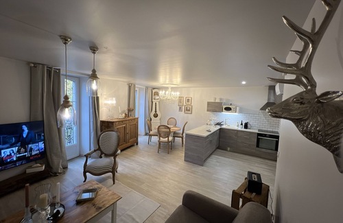 Welcome to the Babolene Shabby Suite! This apartment of 80 m2, in the heart of Villefranche de Rouergue, offers a unique experience. Enjoy views of the Aveyron River and the historic city. Chic shabby atmosphere, four-star bedding, premium entertainment with PlayStation 5 and Vod, desk area with iMac. A spacious space, combining charm and modernity, for an unforgettable getaway. Book now and immerse yourself in an elegant and warm atmosphere.