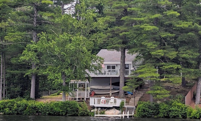 Enjoy private beautiful peaceful sunsets with westerly broad lake view, incredible fall foliage and leaf peeping over the lake, canoeing, paddle boarding, kayaking, lounging on the multiple large decks and modern dock, with ~100 feet of frontage on Baboosic Lake in Amherst/Merrimack NH. Air-conditioned and heated cottage all to yourself, sleeps 6, in 2 sets of bunk beds and a queen size bed. Bright and cheerful sunroom with panoramic view of the lake and nearby hills with sliding screened windows for regular gentle breeze off the lake. Gently sloping lake bottom for swimmers and lake activities at all ages. Quiet dead end street with dedicated parking for guests. Multiple dining options at various price ranges within ten-minute drive, easy access to shopping, antiquing, and outlets within 15 minutes. 50 minutes to Boston or beaches on the ocean, 20 minutes to the Manchester, NH airport.