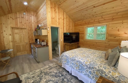 The perfect retreat for a couple or one person visiting Highlands for its variety of 5 star restaurants, shopping, hiking, rest and relaxation. A brand new 1 room guest suite. Sink in to the cozy queen bed for tv or lounge in the chairs to catch up on emails. Well appointed kitchenette with mini fridge, toaster oven and coffee maker ideal for bagels and coffee before you head out for the day, sandwiches for lunch or late night snacks.