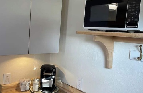 Baby Bear's Playhouse is conveniently located across the street from the grocery store, 3 blocks from downtown restaurants & shopping, and an easy 2-minute drive to the hospital. This tiny house/studio offers a large yard for your pet and kiddos to play, plenty of off-street parking and a shared picnic area complete with BBQ and firepit. If you need more space, please check out our other listing, Mama Bear's Den.