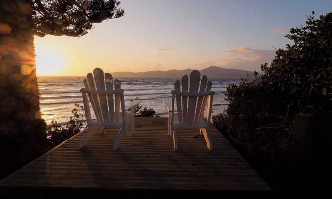 The quintessential Kiwi Bach (Holiday home). Absolute beachfront, only 15 metres to the beach. Amazing views across the ocean to Kapiti Island and the South Island.