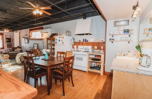 Zia's, Back Door Guest Suite, is an historic storefront reimagined as a charming guest suite with an original lofty warehouse vibe, updated with all the necessities for a comfortable getaway!