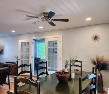 This recently renovated vacation home is located 5.1 miles from Loon Mountain and 11 miles from Franconia Notch State Park. There's an outdoor fireplace and guests can use free Wifi and free private parking. Featuring a patio and garden views, the spacious vacation home includes 3 bedrooms, a living room, flat-screen TV, an equipped kitchen, and 2 bathrooms with an a bath or shower. Towels and bed linen are offered in the vacation home. The property has an outdoor dining area. Guests at Backyard Bliss in the White Mountains can enjoy skiing and hiking nearby, or make the most of the garden. Lebanon Municipal Airport is 65 miles from the property.
