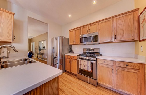 If you are looking for a house and community that will give you a great vacation, you found it. The private backyard with newly updated solar heated pool and new hot tub is very relaxing. When you are ready for activities, the community has an abundance. Walking distance to the golf course that also has great food and weekly entertainment. There are 3 heated community pools with hot tubs, free pitch and put 9 hole golf practice course, tennis and pickle ball courts, basketball courts, yoga classes and a catch and release fishing pond. We are located at the foot hills of the San Tan Mountains with scenic hiking. After all that activity you will want to come home and relax on the patio with your favorite beverage! This home has a open floor plan with wood floors and new stainless appliances. The entertainment center features a 55” smart tv with surround sound, WiFi, cable tv and stero system. All 3 bedrooms also have a tv for your enjoyment. Tons of shopping nearby and don’t forget baseball spring training. You will enjoy this home and area as much as we do.
