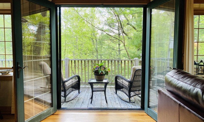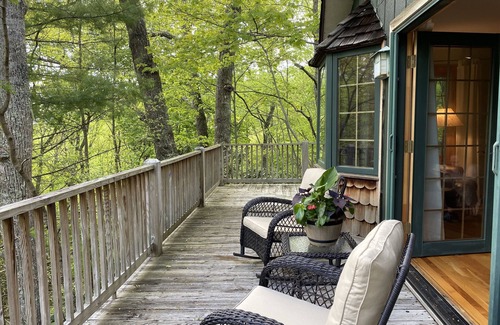 The Badger's Den is a studio apartment nestled in the treetops! Enjoy relaxing out on the deck or explore the grounds featuring a waterfall, a peaceful Koi pond, and a summer house with views of Grandfather Mountain. The apartment features a luxurious colonial queen size bed and a fold out couch for extra guests. Located between Boone and Blowing Rock, the Badger's Den is ideally located to explore all that the Blue Ridge Mountains has to offer!