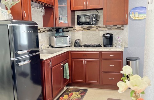 As you settle into this 1-bedroom, 1-bathroom rental, you'll find air conditioning and a desk. Connect to the free WiFi, or get cozy in front of the Smart TV. Bathroom amenities include a hair dryer, towels, and toilet paper. Prepare a home-cooked meal in the kitchen, complete with an oven and a refrigerator, as well as a coffee maker, a microwave, and cookware. Other amenities include bed sheets, an ironing board, heating, and a desk chair.