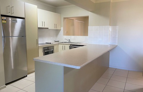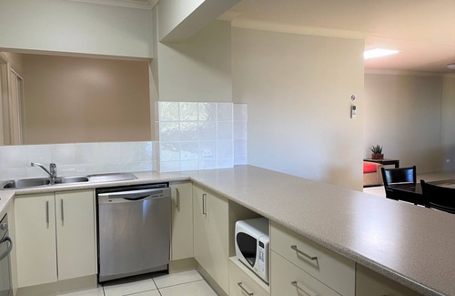 This apartment has it all. Very spacious modern three bedroom apartment on the second floor with lift access. Walk to shops and restaurants. Fully self-contained with all facilities including fully equipped kitchen, 2 living areas, 2 dining areas, 2 bathrooms, fully air-conditioned, 2 flat screen TV'S, DVD, dishwasher, microwave, washing machine & dryer, under cover parking.