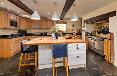 Welcome to Bailey Glace Farmhouse! This charming country retreat in Monmouth, offers both character and comfort. Bailey Glace Farmhouse boasts three spacious double bedrooms—two of which enjoy their own en suite bathrooms, a twin room and a stylish family bathroom.Downstairs there is a large fully equipped kitchen featuring a large breakfast bar and a range cooker. A separate dining area provides the perfect space for hosting meals after a day of exploring. Two downstairs cloakrooms add convenience for guests. The living room boasts a striking stone fireplace with a log burner and comfortable sofas to relax on.The farmhouse is surrounded by expansive gardens, perfect for outdoor entertaining or simply enjoying the tranquility of the countryside.There is also ample parking available.Monmouth is a historic market town in southeast Wales, set where the Rivers Monnow, Wye, and Trothy meet. Known as the birthplace of King Henry V, it boasts a rich heritage, including the unique Monnow Bridge, the only remaining fortified river bridge in Britain. Surrounded by the stunning Wye Valley Area of Outstanding Natural Beauty, the town offers endless opportunities for walking, river activities, and enjoying the countryside. Its vibrant centre is filled with independent shops, cafés, traditional pubs, and a lively arts scene, including the Savoy Theatre and annual festivals. Despite its rural charm, Monmouth has excellent transport links via the A40 to Cardiff, Bristol, and beyond, making it a perfect blend of tranquillity and accessibility.