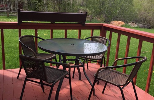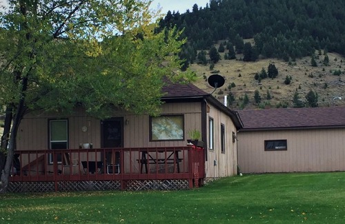 This historic getaway is located in the charming town of Pony, MT at the foot of Hollowtop Mt. in the Tobacco Root Range and backs onto the N. Willow Creek making it a relaxing and picturesque destination. The cabin has 2 bedrooms, 1 with double bed and one with 2 twin beds, full bath, open concept living and dining room area (with sofa bed), full kitchen, washer/dryer as well as two great outdoor spaces for enjoying the amazing views and the babble of the creek. High speed internet is included.