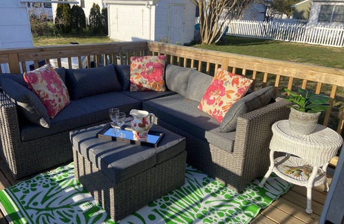 Located in Historic Cape May this great escape is just a 1/2 mile walk to the beach or center of town. Designed for everyone to have a space - relax in style on the front porch, sunroom or new deck with sectional. Enjoy the energy and positive vibes. All rentals are weekly from June to September (Sunday to Sunday).