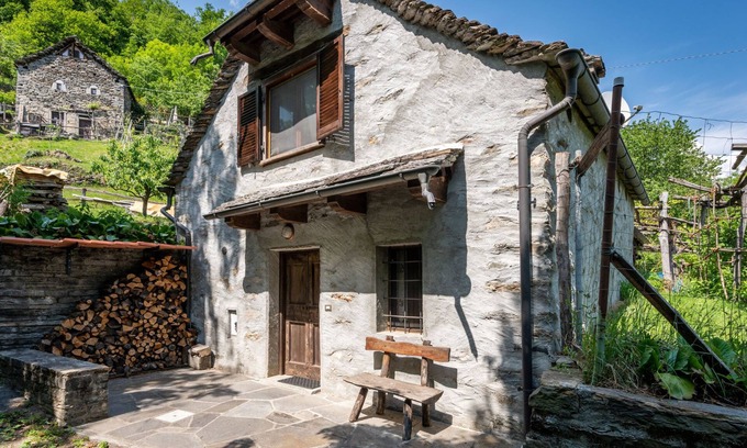 Rustic house "Baita Anita", 550 m a.s.l.. In the hamlet Anunzo 6 km from the centre of Domodossola, 45 km from the centre of Verbania/Intra, 47 km from the centre of Locarno, on a slope, 45 km from the lake, in the countryside. Private: natural state property 100 m2, terraced garden (fenced), meadow, orchard. 100 m long steep, narrow motor access (via unmade road, mountain road). Public parking 200 m. Shop 3 km, supermarket 6 km, bus stop 6 km, railway station "Domodossola" 6 km, pebble beach 47 km. Please note: car recommended. Please note: the fireplace in the living is the only heating option for the whole house (there is, however, an inlet to the bedroom).