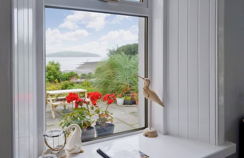 Shower Room: Cubicle Shower, Toilet. Oil central heating (underfloor in kitchen), electricity, bed linen, towels and Wi-Fi included. Initial fuel for wood burner included. Laundry with washing machine (shared).. Enclosed garden with patio. Bike store. Private parking for 2 cars. No smoking. Please note: No children.. In an elevated position overlooking Balcary Bay in Auchencairn, this semi-detached property has fantastic, memorable views out to the sea. The cottage is set in a stunning position and enjoys uninterrupted views of the coast from every room and has coastal walks from the door. Situated close to 7Stanes mountain biking country, it is also ideal as a base to explore local history, with castles, abbeys, mansions and ruins, or the Machars Peninsula and the Galloway Hills. The historic cities of Edinburgh and Carlisle, cosmopolitan Glasgow and the north Lake District are easily reachable.