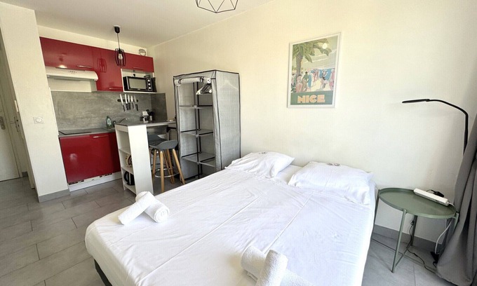 This charming studio, ideally located in the heart of Nice, is a true cocoon for two people. Just a few steps away from the tram, Place Masséna, Old Nice and the Promenade des Anglais, it offers a perfect pied-à-terre to discover the city on foot.