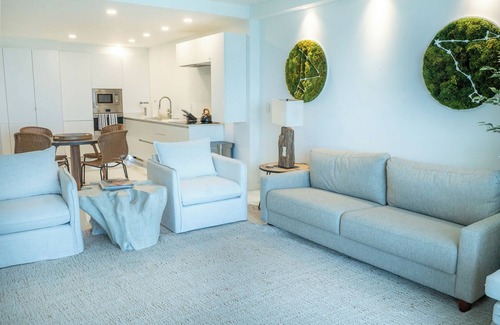 Step inside and feel instantly at ease. The compact yet well-equipped kitchen features sleek finishes, all the essentials for your stay, and a Nespresso machine to jumpstart your mornings. Enjoy your meals or sip cocktails at the stylish dining table for four, perfectly positioned for easy flow and conversation. In the living room, sink into the plush couch or kick back in the cozy armchairs while streaming your favorite shows on the smart TV. Slide open the doors to your private balcony—where warm breezes and ocean views make the perfect backdrop for morning coffee or evening wine. When you're ready for the sand, beach essentials are provided so you can head straight to the shoreline without a second thought.