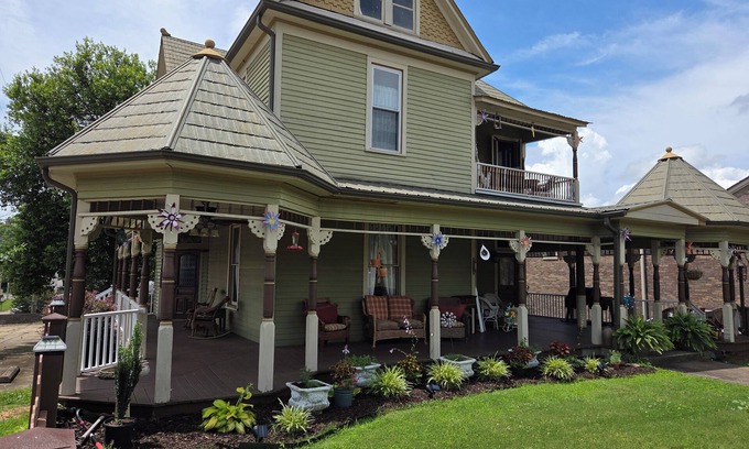 Luxurious and laid back in the heart of downtown Talladega and a one block stroll from the Historic Ritz Theatre, this home is the last of it's kind on the old church side of North St E. Staying here, you feel the character and history facing the 1834 Presbyterian Church. The apartment is complete with a beautiful balcony, full kitchen, laundry, two claw foot bathrooms, one with a shower fixture, two King bedrooms, a sitting room with mini fridge and Keurig, and a play/art studio/ library room. This beautiful 1904 Queen Anne Victorian is our primary residence. We are renovating the first floor to be an upscale private lodging and events hosting space in the coming months. We're happy to show you around and you're welcome to use the wrap around front porch, back deck and courtyard. Your upstairs sitting room has a queen size air mattress for extra sleeping arrangements and breakfast may be served in the dining room on the first floor by request. You have access to the entire upstairs apartment and the porches and courtyard below. We'll give you a tour of the first floor spaces by request. We can be reached by messaging anytime. Please don't hesitate. We do our best to respond quickly. Wave to Mr. Melvin at the garage next door. Everybody knows Mr. Melvin and that's why you'll hear an occasional honk from passers by:) On the other side is a very quiet law office. Talladega rolls up the streets at 6pm so you'll feel like you have the whole downtown area to yourselves. You can play music on the balcony into the wee hours of the morning if you wish. The closest neighbor is up on the hill and the sound doesn't carry that far. We sleep in the back of the first floor. You won't disturb us a bit. Please make yourself at home.