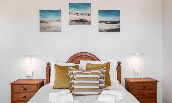 The Baleal Blue Ocean is practically on top of the beach dunes offering the sound of the sea waves and beautiful natural landscapes that promise to mark any holiday. Whether with family or friends, it's in this Duplex with coastal style inspired by the region and only a 5-minute walk that you can start a new adventure and contemplate the best that Baleal has to offer.